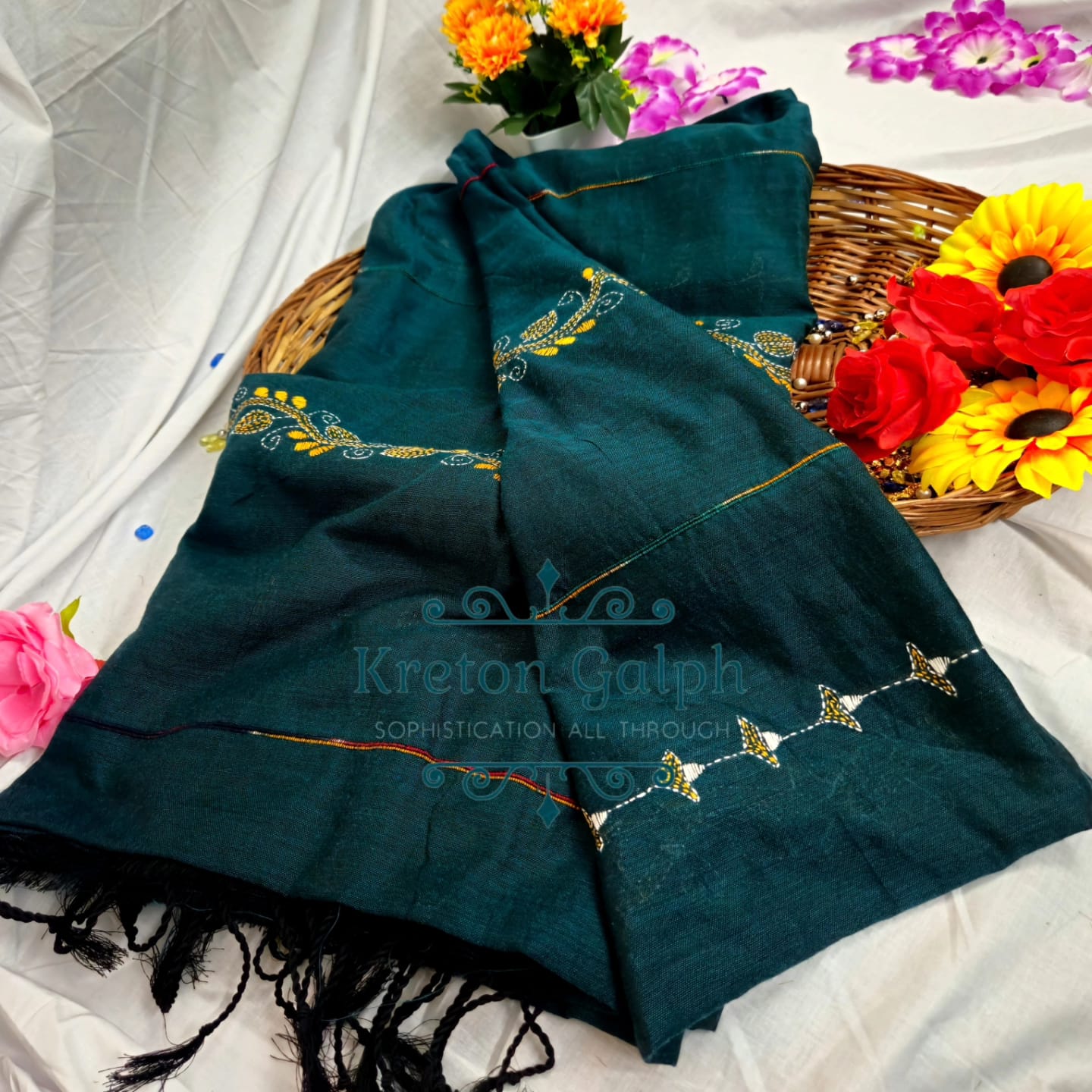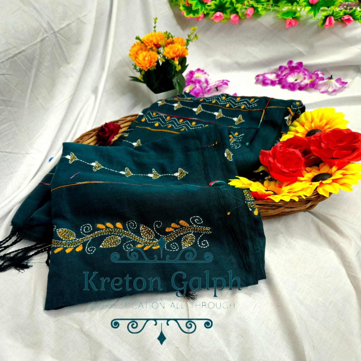 Khes sarees are sustainable and comfortable.Those sarees are one of its kind and are hand embroidered.Khes sarees are one of its kind and its origin is in Bengal.