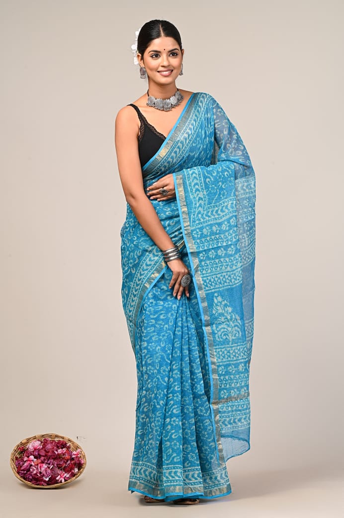 Embrace tradition with our Kota Doria saree, expertly made from high-quality cotton kota doria fabric. Each of these sarees highlights the rich heritage of hand block prints, making it an ideal choice for infusing cultural elegance into your appearance.