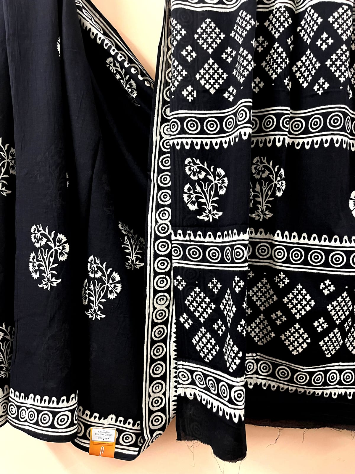 This jet black mul cotton saree is an example of both simplicity and elegance.Pure organic dye is used for this saree.Extremely lightweight and summer friendly material.
