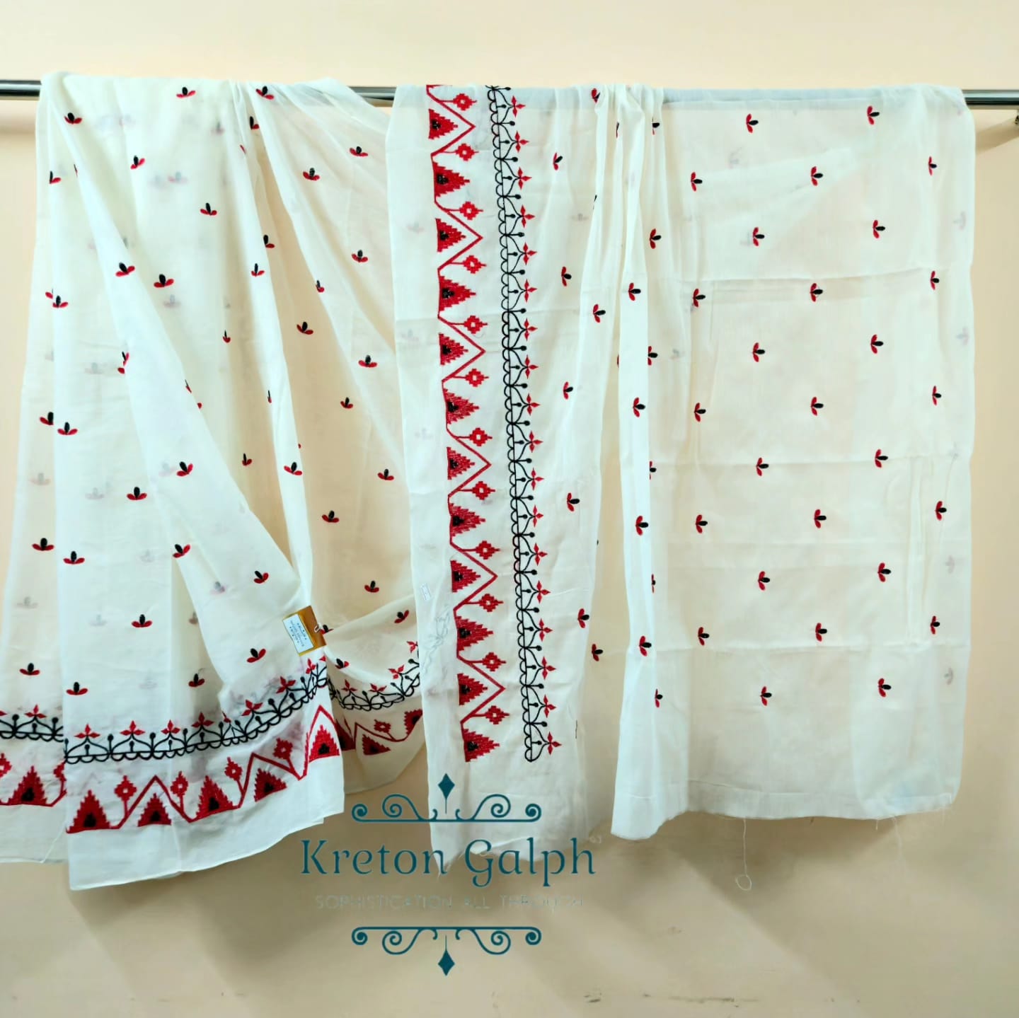 Indulge in luxury with our handcrafted pure cotton embroidered saree.Adorned with intricate embroidery work on soft cotton fabric this saree leads to sophistication and makes it pefect for special occasions.