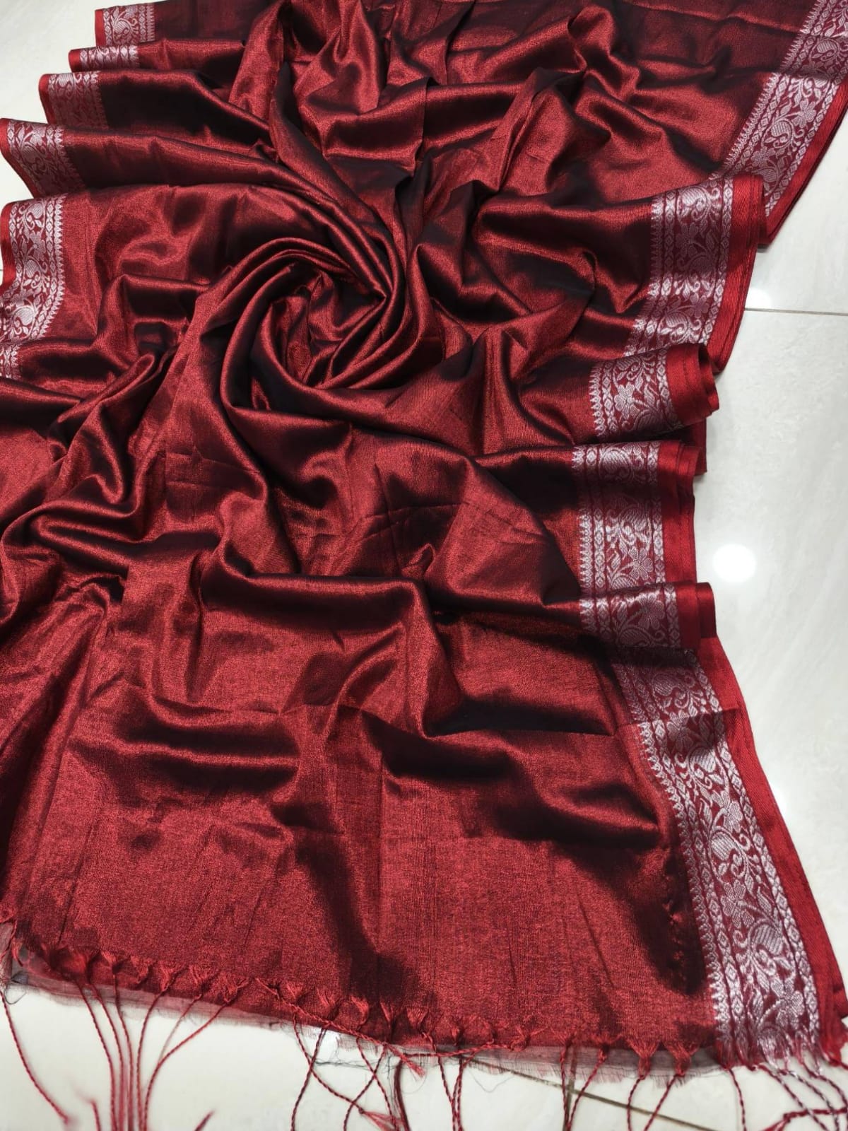 Traditional South Indian Tissue Cotton Saree with a soft, lightweight texture and elegant sheen. Perfect for festive and cultural occasions, offering a graceful drape with timeless charm. Comes with a matching blouse piece.